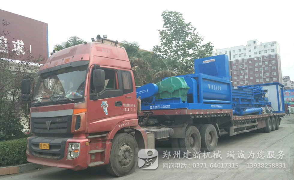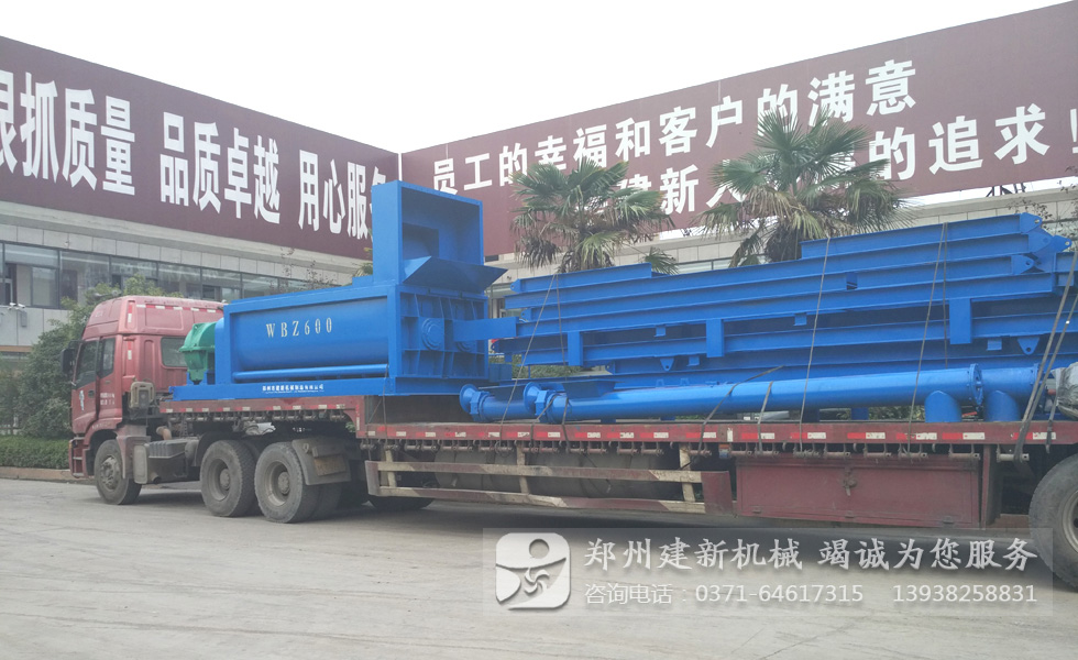 本月19日下午,兩輛半掛貨車在鄭州建新機(jī)械等待裝貨,此次要發(fā)出的是一套WBZ600穩(wěn)定土拌和站,每小時可達(dá)到600噸穩(wěn)定土的產(chǎn)量。WBZ600穩(wěn)定土拌合站主機(jī)采用雙臥軸連續(xù)式無襯板攪拌機(jī),維護(hù)方便,拌料均勻,生產(chǎn)效率高。設(shè)備于下午五點(diǎn)左右裝車完成,即將發(fā)往廣西。