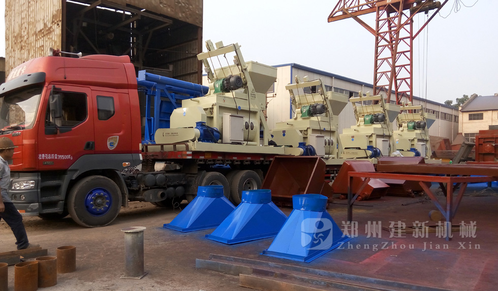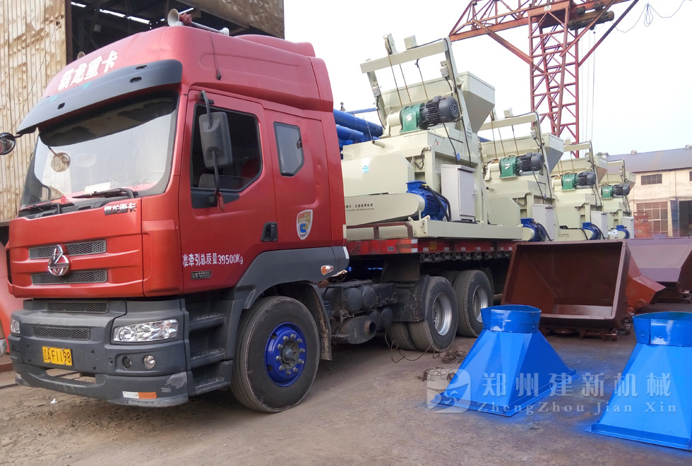 2015年7月11日下午,4臺JS1000強(qiáng)制式混凝土攪拌機(jī)在鄭州建新機(jī)械裝車,運(yùn)往遼寧。